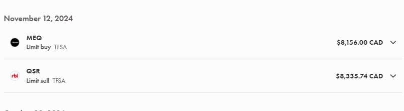Today I decided to sell out my entire QSR position in my TFSA after holding it for 3 years, and bought Mainstreet equity corp MEQ instead. I sold QSR at 18% profit, plus 3.5% dividends earned each year, resulting in a 9% annual return, which is ok but lower than what I expected. QSR's growth has slowed down recently and MEQ seems to be a much better opportunity.